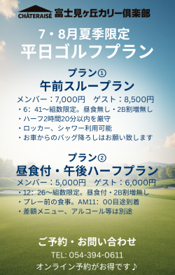 夏季限定の平日サマープランのご案内