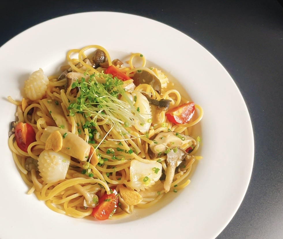 秋のきのこと甲イカの和風パスタ